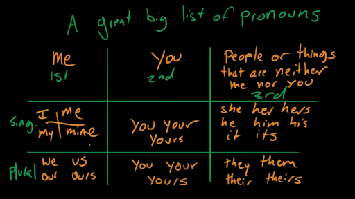 - [Voiceover] Hello grammarians! I want to talk about personal pronouns. But before I get too specific with that, I just want to write out