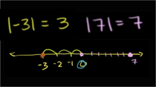 we're told to plot these values on a number line and you see every one of these values have an absolute value sign so let's take a little bit of review of what absolute value even is absolute absolute value the way I think about it there's two ways to think about it the first way to think about is how far is something from zero so let me plot this negative three here so let me do a number line this isn't the number line for our actual answer or to this command plot these values on a number line this is I'm just first going to plot the numbers inside the absolute value sign and then we're going to take the absolute value and plot those just like they're asking us to do so on this number line if this is zero if we go to the negative we're going to go to the left of zero so this is negative one negative two negative three negative three sits right over there so this is negative three right there negative three right there the absolute value of negative three is essentially saying how far are you away from zero how far is negative three from zero and you say well it's one two three away from zero so you'd say that the absolute value of negative three is equal to positive three now that's really the conceptual way to imagine absolute value how far are you away from zero from zero but the easy way to calculate absolute value signs if you don't care too much about the concept is whether it's negative or positive the absolute value of it's always going to be positive absolute value of negative three is positive three absolute value of positive three is still positive three so you're always going to get the positive version of the number so to speak but conceptually you're just saying how far away are you from zero so let's do what they asked so there's that first value on this number line so all of these are absolute values so they're all going to be positive values so they're all going to be greater than zero so let me draw my number line like this I could do a straighter number line than that let's see well that's a little bit straighter and let's say if this is zero this would be negative one then you'd have one two three four five six seven I think that'll do the trick so this first quantity here I'll do it in orange the absolute value of negative three we just figure it out that is positive three so I'll plot it right over there positive three then this next value right here the absolute value of seven if we look over here one two three four five six seven seven is how far away from zero it is seven away from zero so the absolute value of seven absolute value of 7 is equal to seven so you already see the pattern there if it's negative it just becomes positive it's already positive it just equals itself so plotting this value will just place it right over there so the absolute value of 7 is 7 absolute value of negative 3 is positive 3 let me write mark out the or the zero a little bit better so you see relative to zero now we have the absolute value of 8 minus 12 the absolute value of 8 minus 12 well first of all let's figure out what 8 minus 12 is so if you take 12 away from 8 you're at negative 4 12 less than 8 is negative 4 and you can do that on the number line if you don't if this is a little bit if you don't quite remember how to do this but if you you know 1 away from if you take 8 away from 8 you're at 0 and then take another one here at negative 1 then at negative 2 negative 3 all the way to negative 4 so this is equal to the absolute value of negative 4 if we just plot absolute negative 4 we go 1 2 3 negative 4 is right over there but if we're taking its absolute value we're saying how far is negative 4 from 0 well it's 4 away from 0 1 2 3 4 so this is equal to positive 4 so we'll plot it right here this number line is the answer to this command up here so the absolute value of 8 minus 12 negative 4 is positive 4 then we have the absolute value of 0 of 0 so how far is 0 from 0 well it's 0 away from 0 the absolute value of 0 is 0 so you can just plot it right over there and we have one left let me pick a suitable color here the absolute value of 7 minus 2 the absolute value of 7 minus 2 well 7 minus 2 is 5 so this is the same thing as the absolute value of 5 how far is 5 away from 0 well it's just 5 away it's almost you know too easy that's what makes it confusing if I were to plot 5 it's 1 2 3 4 5 it is 1 2 3 4 5 spaces from 0 so the absolute value of 5 is 5 if you plot it just like that so conceptually it's how far you are away from 0 but if you think about it in kind of just very simple terms if it's a negative number it becomes a positive version of it if it's a positive number already it just equals itself when you take the absolute value
