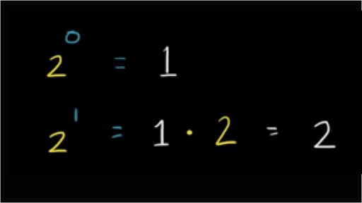 what I want to do in this video is think about exponents in a slightly different way that will be useful for different contexts and also go through a lot more examples so the last video we saw that taking something to an exponent means multiplying that number that many times so if I had the number negative 2 and I want to raise it to the third power this literally means taking 3 negative twos so this literally means taking 3 negative 2 so negative 2 negative 2 and negative 2 and then multiplying them and then multiplying them so what's this going to be well let's see negative 2 times negative 2 is positive 4 and then positive 4 times negative 2 is negative 8 so this would be equal to this would be equal to negative 8 now another way of thinking about exponents instead of saying you're just taking 3 negative 2s and multiplying and this is a completely reasonable way of viewing it you could also view it as this isn't this is a number of times you're going to multiply this number times one so you could completely view this as being equal to so you're going to start with a 1 and you're going to multiply 1 times negative 2 3 times so this is times negative 2 times negative 2 times times negative 2 so clearly these are the same number here we just took this and we're just multiplying it by 1 so you're still you're still going to get negative 8 and this might be a slightly more useful idea to get an intuition for exponents especially when you start taking things to the 1 or 0 power so let's think about that a little bit what is 2 what is positive 2 to the based on this definition to the 0 power going to be equal 2 to the 0 power going to be equal to well we just said this says how many times are you going to multiply 1 times this number so this literally says I'm going to take a 1 I'm going to take a 1 and I'm going to multiply it by 2 zero times well if I want to multiply it by two zero times that means I'm left with the 1 so 2 to the 0 power is going to be equal to 1 and actually any nonzero number to the 0 power is 1 by that same rationale and I'll make another video that will also give a little bit more intuition intuition on there that might seem very counterintuitive but it's based on one way of thinking about it is thinking of an exponent as this and this will also make sense if we start thinking of what 2 to the 1st power is so 2 2 to the 1st power so let's go to this this definition we just gave her the exponent we always start with a 1 and we multiply it by the 2 one time so 2 is going to be 1 we're only going to multiply it by the two I'll use this for multiplication I use the dot we're going to multiply it by 2 one time so 1 times 2 well that's clearly just going to be equal to 2 and any number to the first power is just going to be equal to that number and then we can go from there and you'll of course see the pattern if we say what 2 squared is 2 squared well based on this definition we start with a 1 and we multiply it by 2 2 times so times 2 times 2 is going to be equal to 4 and we've seen this before you go to 2 to the third 2 to the third power you start with a 1 start with a 1 and then multiply it by 2 3 times so times 2 times 2 times 2 this is going to give us positive positive 8 and you probably see a pattern here every time we multiply by 2 or every time I should say we raise 2 to a 1 more power we are multiplying by 2 notices you to go from 2 to the 0 2 to the 1 we multiplied we multiplied by 2 I'll use a little X for the multiplication symbol now they'll across and then to go from 2 to the first power to 2 to the second power we multiply by 2 multiplied by 2 again and that makes complete sense because this is literally telling us how many times are we going to take this number and how many times I'm going to take one and multiply it by this number and so when you go from two to the second part of to the third you're multiplying by two multiplying by two one more time and this is another intuition of why something to the zero power is equal to one if you were to go backwards if say we didn't know what two to the zero power is and we were just trying to figure out what would make sense when we go from two to the third power to two to the second we'd be dividing by two we're going from eight to four then we divide by two again to go from ii ii ii ii ii to the first and then maybe it seems like we should just divide by two again for two from going from 2 to the first to two to the zero and that would give us 1