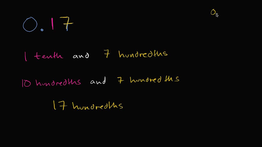 it zero point one seven, or one tenth and seven hundredths, we could call this 17 hundredths. So with that out of the way,
