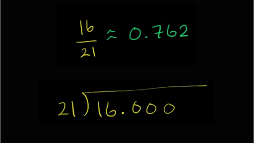 16 twenty-firsts. This is also 16 divided by 21. So we can literally