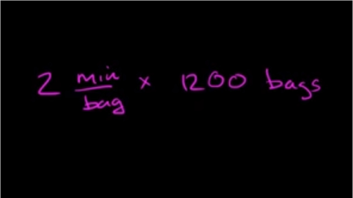 take her two minutes for each of the 1,200 bags. Well that's 2 times