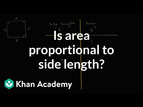 so let's draw a square so it's not perfectly drawn but this is a reasonable attempt at a square and of course one of the things that we know about a square is all of the sides are going to have the same length so if the length of this side is X well all of them are going to have all of them are going to have length X we also know this is a these are going to be right angles that's what makes it a square now the question I want to ask are the lengths of the side of a square proportional to its area and I encourage you to pause the video and think about it are the lengths of a side are the length of the sides of a square proportional to the squares area well to think about that let's draw let's have a little table here so side length side length and that's going to be given as X so that's going to be X and then I'll have another column I can draw that a little bit neater so let me use this tool so there you go and I'm going to make two columns two columns right over here and then over here I'm going to put area area and what's the area going to be well the area is going to be one of the sides squared it's square you could view it as the width times the height so it's going to be x times X or x squared so let's just pick some values for X and then figure out what the area is going to be so if X is going to be equal to one the area is going to be 1 times 1 which is still 1 if X is going to be equal to 2 the area is going to be 2 times 2 which is equal to 4 if X is going to be equal to 3 the area is going to be 3 times 3 which is equal to 9 and I could keep going but I think this is enough these are enough points to think about is the side length proportional to the area or is the area proportional to the side length and one of the ways you can think about proportionality is are the ratios between the side length and the corresponding area always the same so we want to look at the ratio between side length and area or area and side length as long as they're always constant air yeah and side-length it let me do this as two separate and side lengths so let's make an extra column here let's make an extra column here so there we go and let's look at that ratio the ratio of area to side to side length so here the ratio is 1 over 1 1 over 1 which equals 1 that seems reasonable for this next one the ratio of area over side length is 4 over 2 4 over 2 which equals 2 I don't even have to go to this third one I can I could say this ratio is going to be area over side length is going to be equal to 3 and notice I get a different value every time this is not equal to a constant I don't have a constant ratio between area and side length so that tells us that these two that the side length and the area are not proportional not not proportional and if you look at it it makes a lot of sense that the ratio is actually going to be equal to the actual side length that it changes depending on the side length and that's because we're squaring things it's it's literally you're literally taking x squared if you know if you have X here this is going to be x squared and the ratio is going to be x squared over X which of course is always just going to be equal this is x times X divided by X that's always going to be equal to X and we see that right over here but it's definitely not proportional
