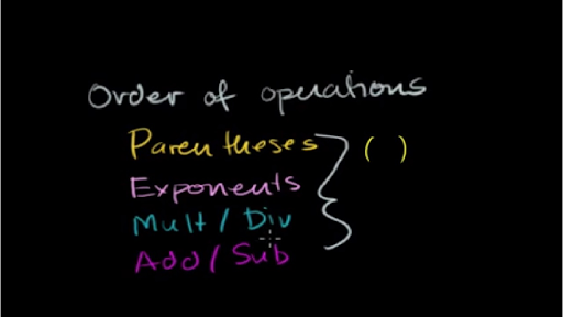 in this video we're going to talk a little bit about order of operations and I want you to pay close attention because really everything else that you're going to do in mathematics is going to be based on you having a solid grounding in order of operations so what are we even taught mean when we say order of operations so let me give you an example the whole point is so that we have one way to interpret a mathematical statement so let's say I have the mathematical statement seven seven plus three times five now if we didn't all agree on an order of operations there would be two ways of interpreting this statement you could just read it left to right so you could say well let me just take seven plus three you could say seven plus three and then multiply that times five and 7 plus 3 is 10 and then you multiply that by five ten times five it would get you 50 so that's one way you would interpret it if we didn't agree on an order of operations maybe it's a natural way you just go left to right another way you could interpret it you say I like to do multiplication before I do addition so you might interpret it as I'll try to color code it seven plus and you do the three times five first seven plus three times five which would be 7 plus 3 times 5 is 15 and 7 plus 15 is 22 is 22 so notice we interpreted this statement in two different ways this was just straight left-to-right doing the addition then the multiplication this way we did the multiplication first then the addition we get two different answers and that's just not cool in mathematics if so this was part of some effort to send something to the moon because two people interpreted a different way or not one computer interpreted one way and another computer interpret another way that the satellite might go to Mars so this is just completely unacceptable and that's why we have to have an agreed-upon order of operations and agreed-upon way to interpret this statement so the agreed-upon order of operations is to do parentheses first let me write it over here for the C's paren the C's first then do exponents if you don't know what exponents are don't worry about it right now exponents and in this video we're not going to have any exponents in our examples so you don't really have to worry about them for this video then you do multiplication I'll just write multiplication then you do multiplication and division next they kind of have the same level of priority and then finally you do addition and subtraction finally you do addition and subtraction so what is this order of operations let me label it this right here that is the agreed-upon order of operations and if we follow these order of operations we should always get to the same answer for a given statement so what does this tell us what is the best way to interpret this up here well we have no parentheses parentheses look like that those little curly things around numbers we don't have any parentheses here I'll do some examples that do have parentheses we don't have any exponents here but we do have some multiplication and division or we actually just have some multiplication so the order of operations say do the multiplication and division first so it says do the multiplication first that's a multiplication so it says do this operation first it gets priority over addition or subtraction so if we do this first we get the 3 times 5 which is 15 and then we add the 7 the addition or subtraction I'll do it here addition we just have addition just like that so we do the multiplication first get 15 then add the 7 22 so based upon the agreed order of operations this right here is the correct answer the correct way to interpret this statement let's do another example I think it'll make things a little bit more clear and I'll do the example in pink so let's say I have 7 plus 3 7 plus 3 put some parentheses there times 4 divided by 2 - five times six so there's all sorts of crazy things here but if you just follow the order of operations you'll simplify it in a very I guess clean way and hopefully we'll all get the same answer so let's just follow the order of operations the first things we have to do is look for parentheses are there parentheses here yes there are there's parentheses around the seven plus three so it says let's do that first so 7 plus 3 is 10 so this we can simplify just looking at this order of operations 210 times all of that let me copy and paste that so I don't have to keep rewriting it so let me copy and let me paste it so that simplifies to 10 times all of that we did our parentheses first then what do we do when there are no more parentheses in this expression then we should do exponents I don't see any exponents here and just so if you're curious what exponents look like an exponent would look like you know 7 squared you'd see these little small numbers up in the top right we don't have any exponents here so we don't have to worry about it then it says to do multiplication and division next so where do we see multiplication to me we have a multiplication a division a multiplication again now when you have multiple operations at the same level within our order of operations multiplication and division are at the same level then you do left to right so in this situation you're going to multiply by 4 but and then divide by - you won't multiply by 4 divided by 2 and but then we'll do the 5 times 6 before we do this subtraction right here so let's figure out what this is so we'll do this multiplication first we'll do that multiplication first we could simultaneously do this multiplication because it's not going to change things but I'll do what things one step at a time so the next step we're going to do is this 10 times 4 10 times 4 is 40 10 times 4 is 40 then you have 40 divided by 2 let me copy and paste all of that again then it simplifies to that right there remember multiplication division they're the exact same level so we're going to do it left - right you could also Exp