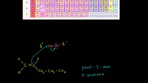 hydrogen bromide and 1-pentene, or pent-1-ene, and
