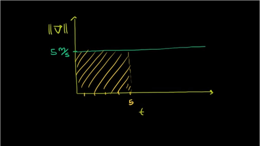 five meters per second. But how far have we traveled? So we could think about