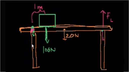 table plus the bookshelf, that's 120 Newtons. So the balance of this